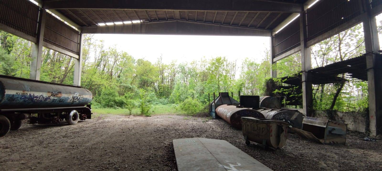 ampia area esterna, ideale anche come deposito, lavorazioni meccaniche, dimesioni 166 m x 24 ideale per lunghe linee di produzione.