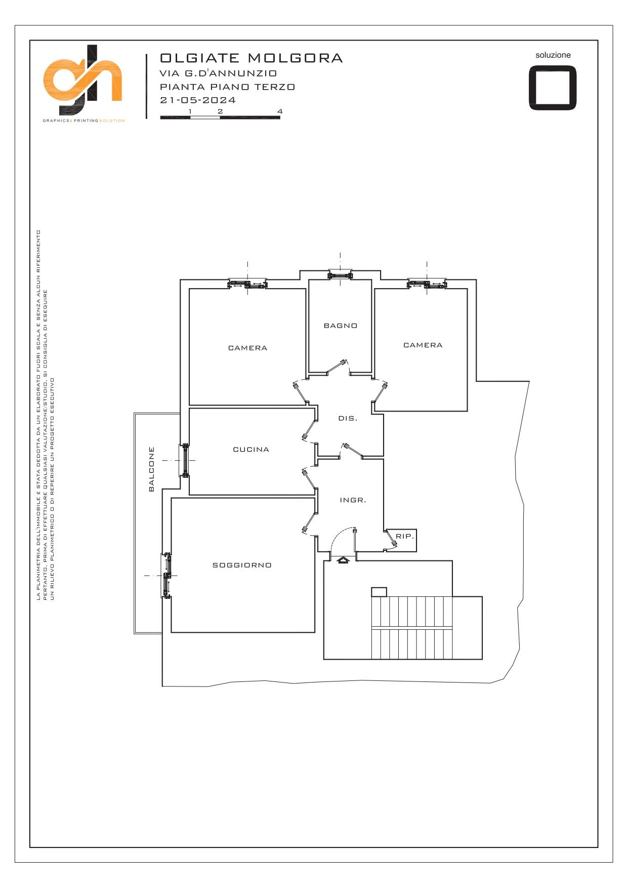 L'appartamento, situato al terzo ed ultimo piano, offre un'ampia metratura di circa 100 mq. Gli spazi interni sono ben distribuiti: un ampio ingresso, una cucina abitabile dalle generose dimensioni, un soggiorno molto spazioso, due camere da letto matrimoniali, un bagno. Un pratico ripostiglio è presente per ottimizzare lo spazio.